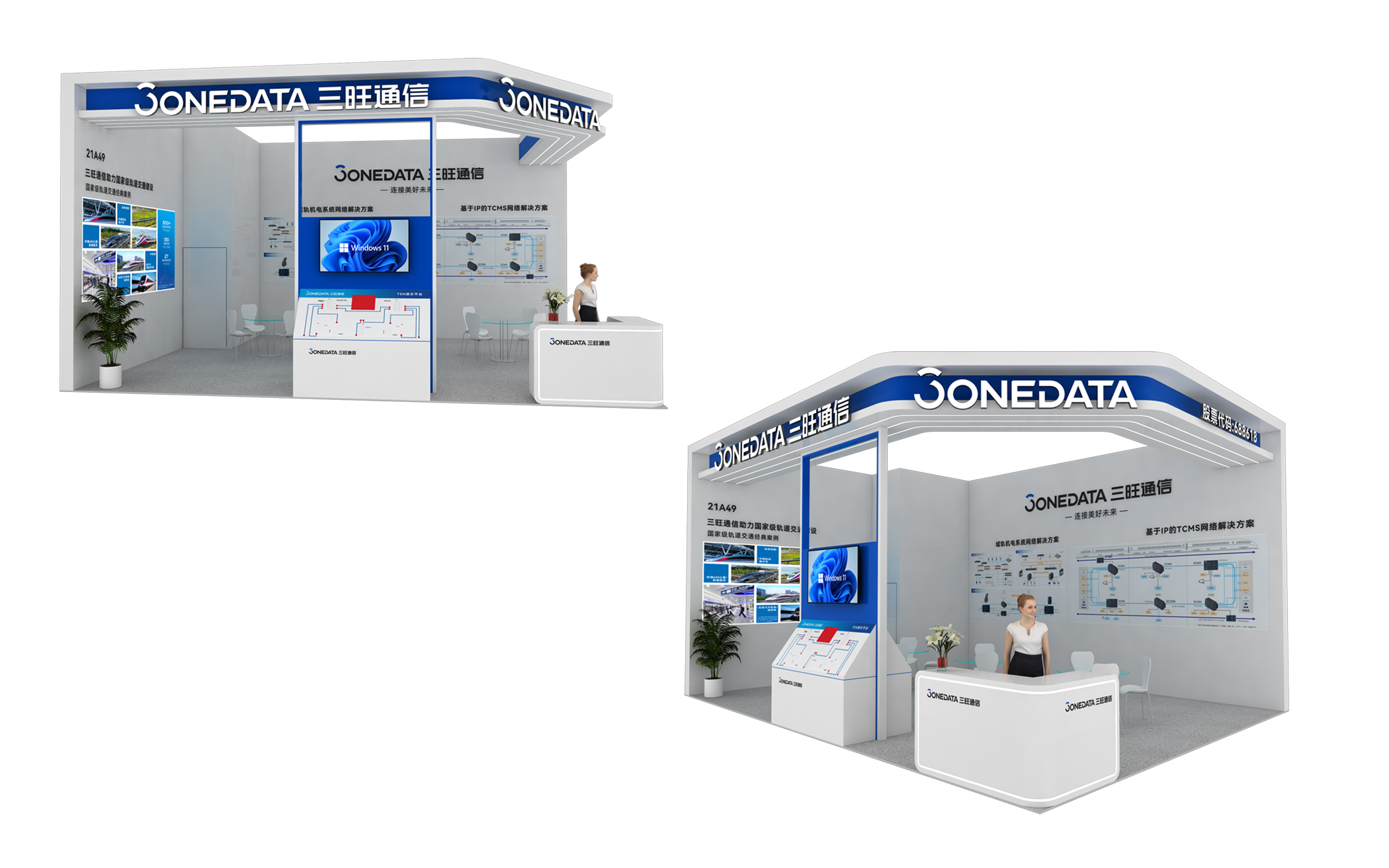 轨道交通展会展台设计搭建,该展台的顶部曲线造型打破常规,框架和接待台做了布局的抽离,所以造型就有了呼吸感,没有“整头罩住”的感觉。