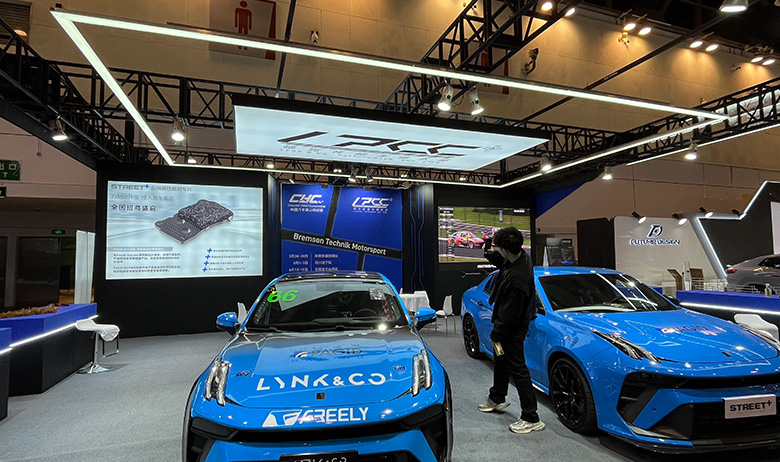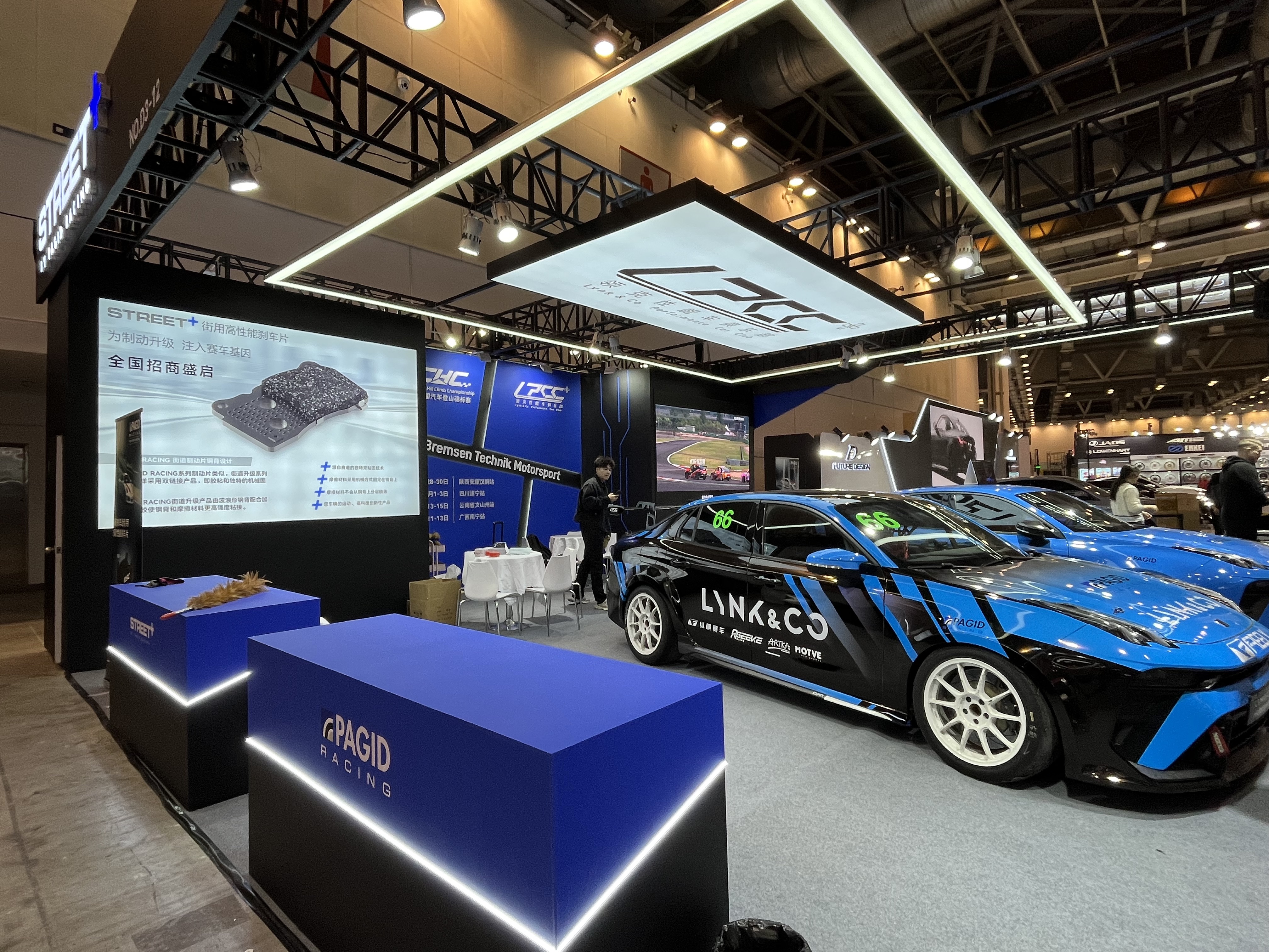GTShow苏州国际汽车改装展会设计搭建,该展台功能区域分为接待区、产品展示区、品牌展示区、洽谈区