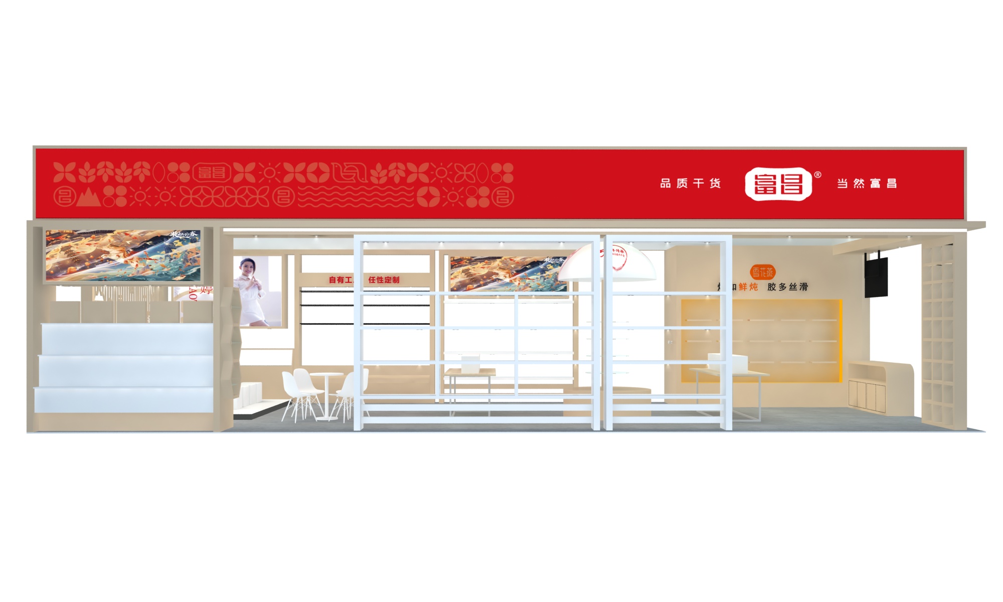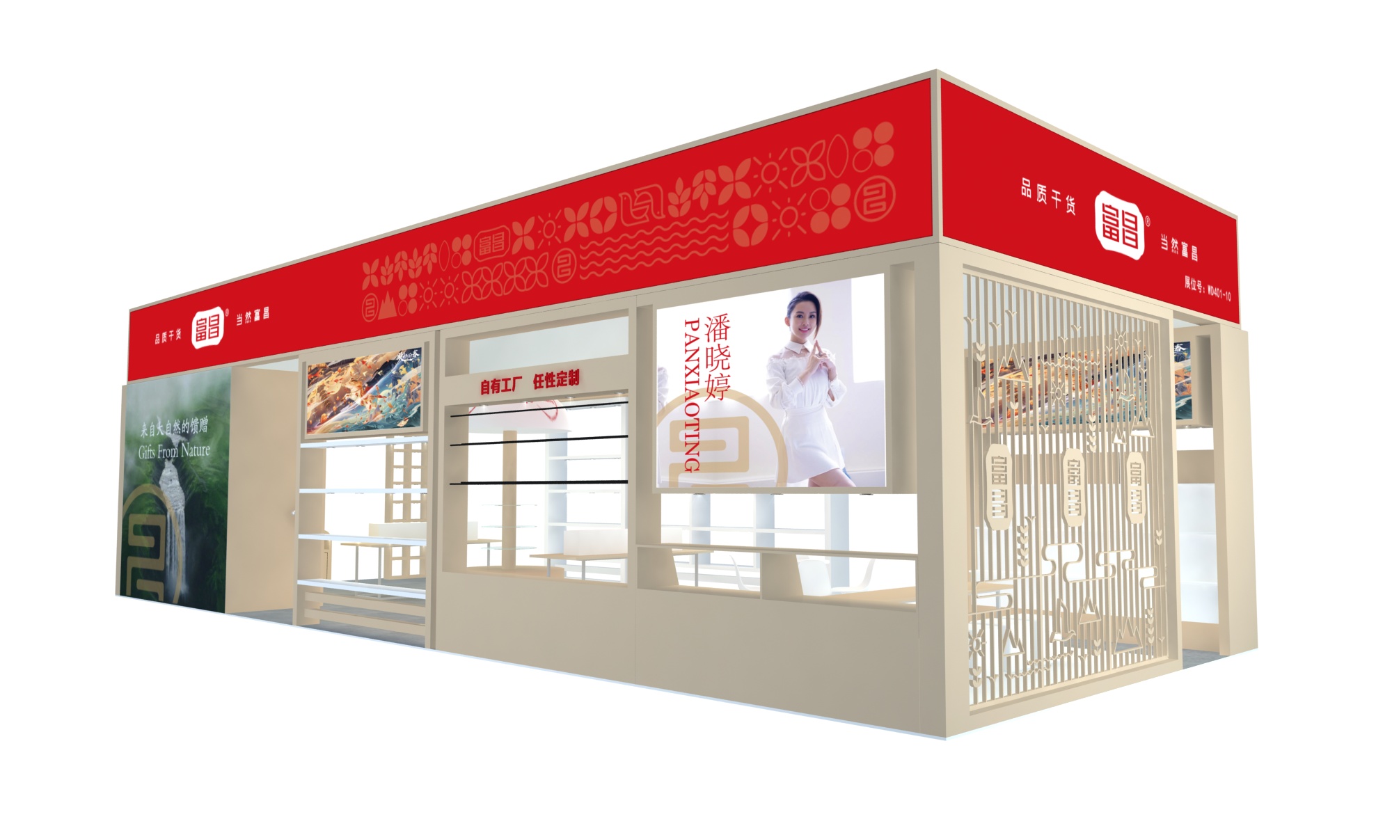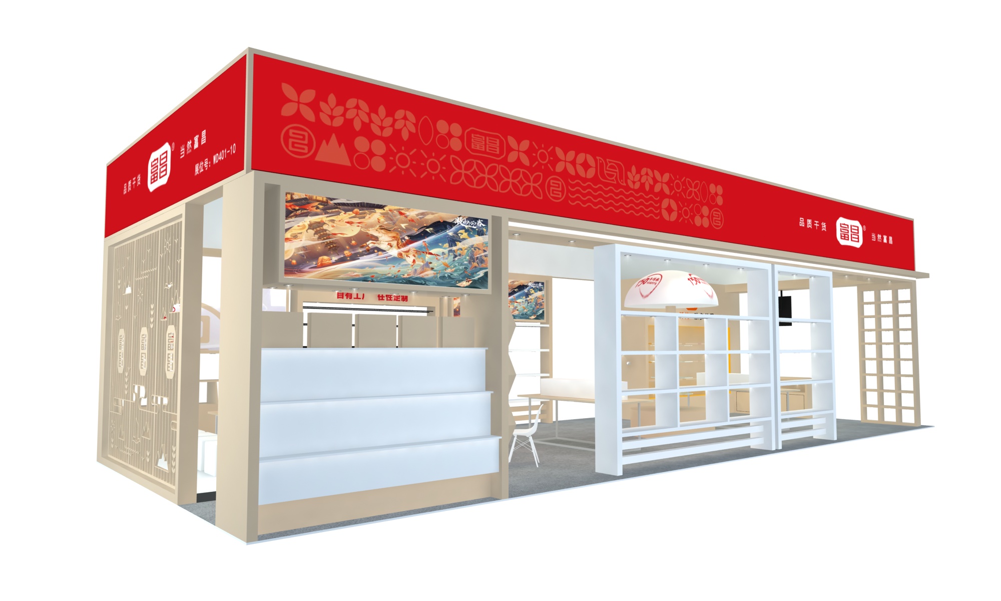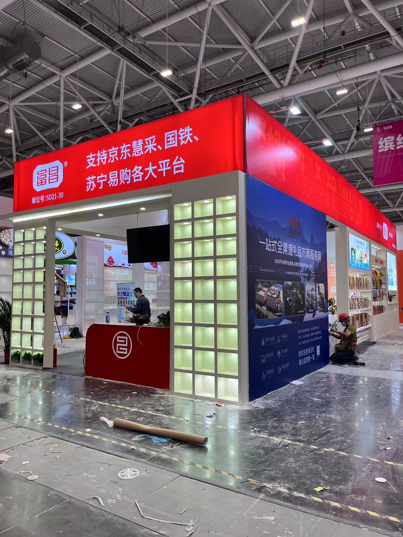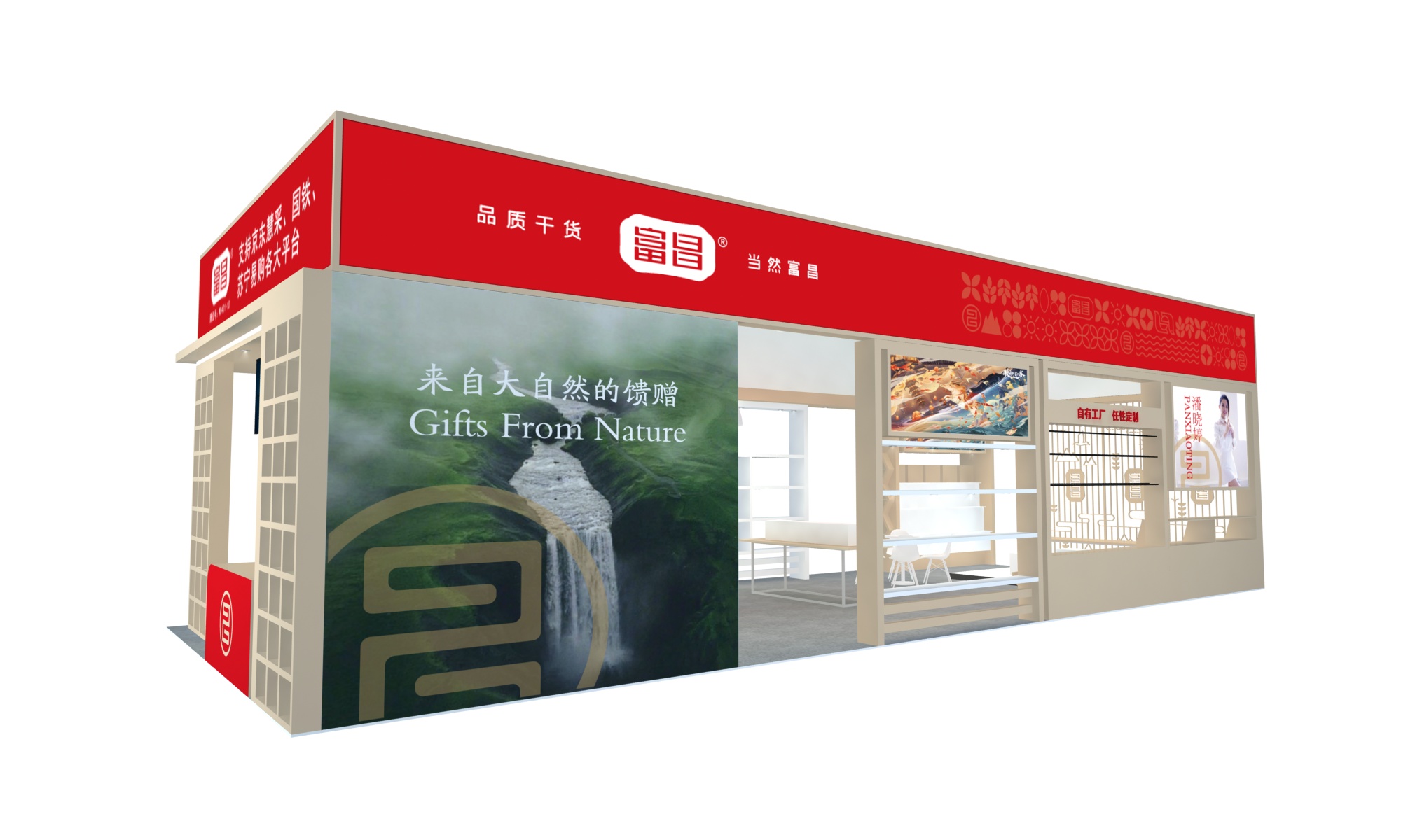 礼品展台设计搭建,展台采用黄白红撞色,整体温暖又吸睛,俨然就是中国礼品配色代表