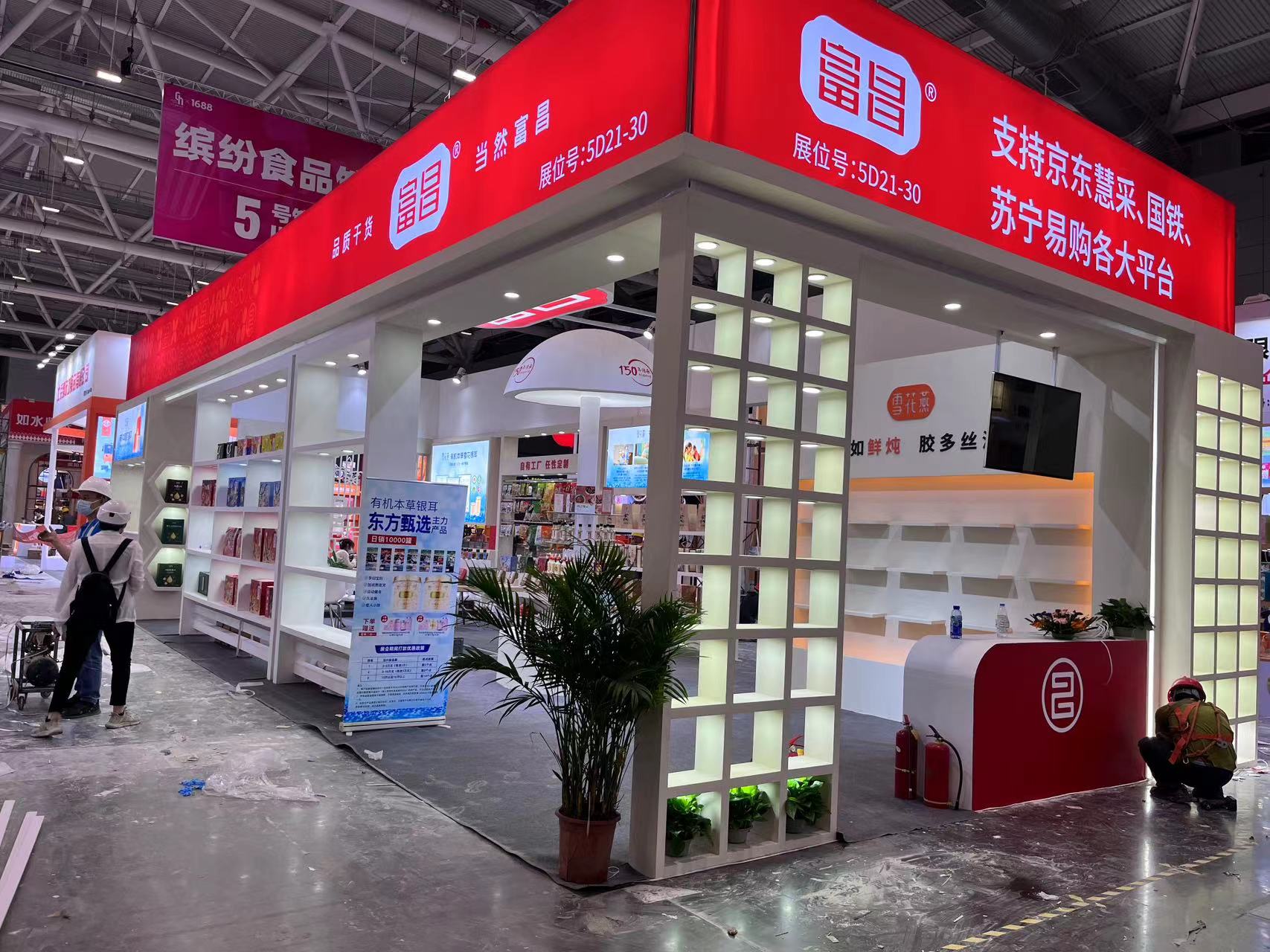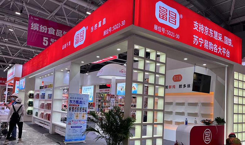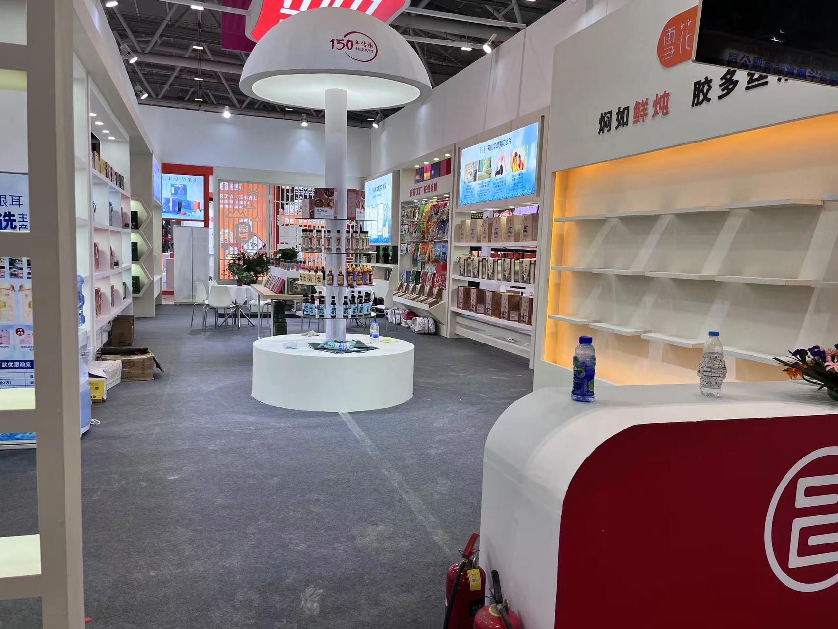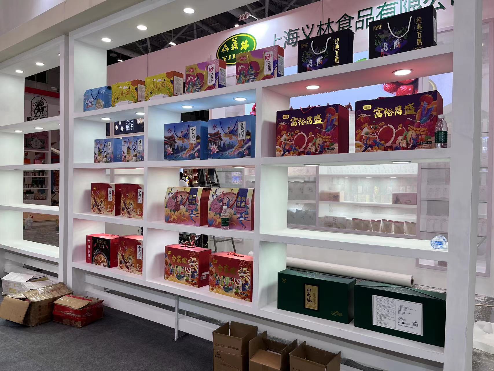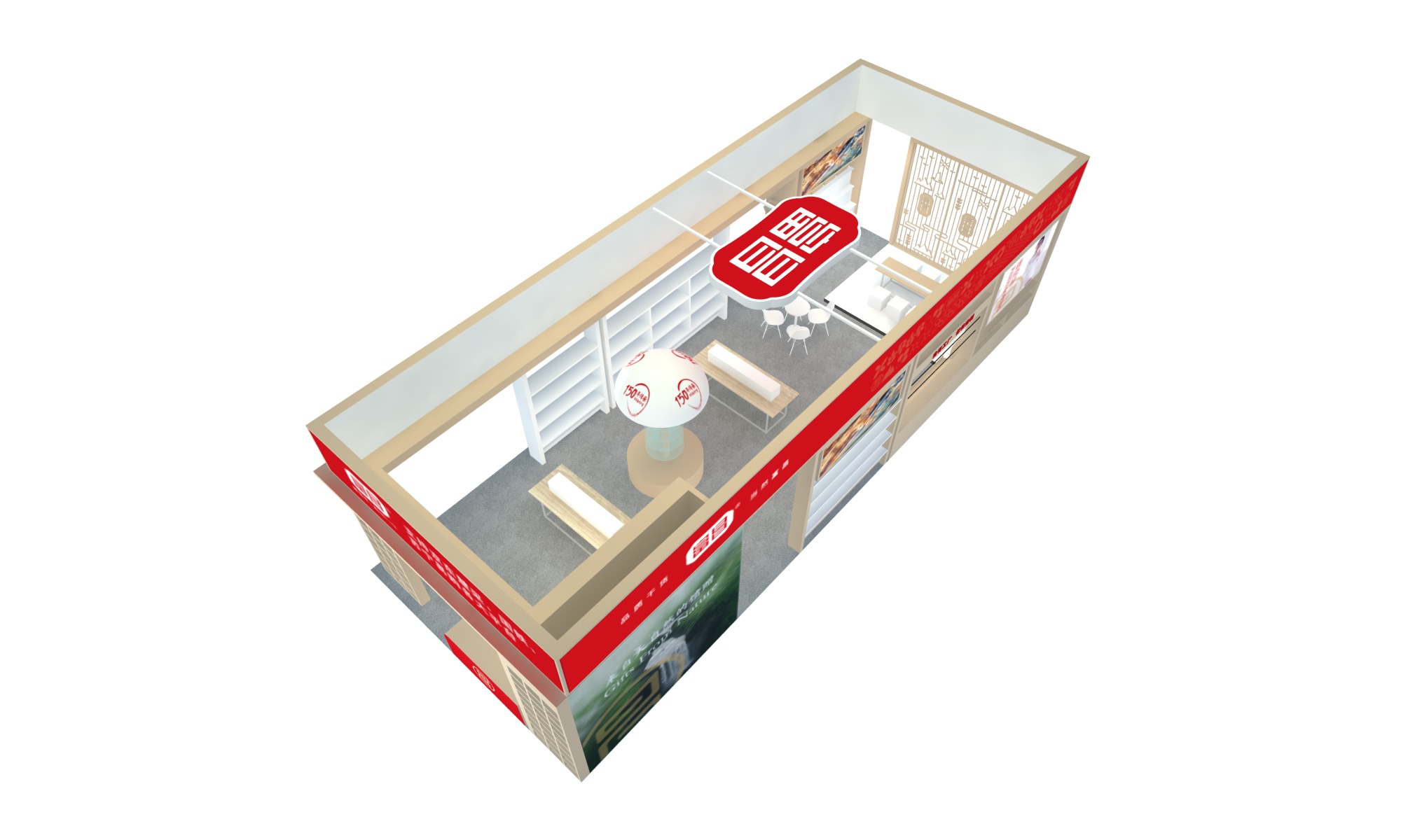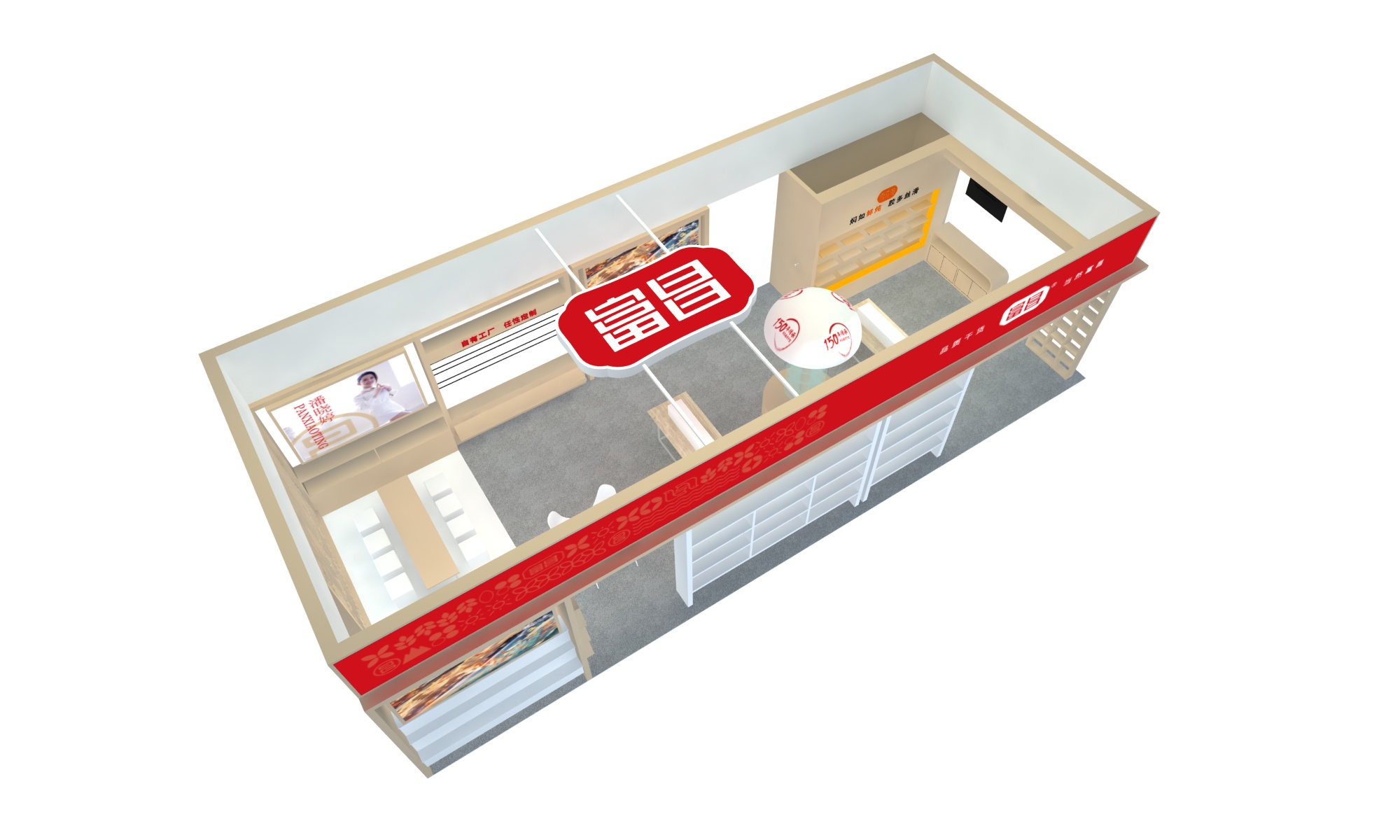 礼品展台设计搭建,展台采用黄白红撞色,整体温暖又吸睛,俨然就是中国礼品配色代表