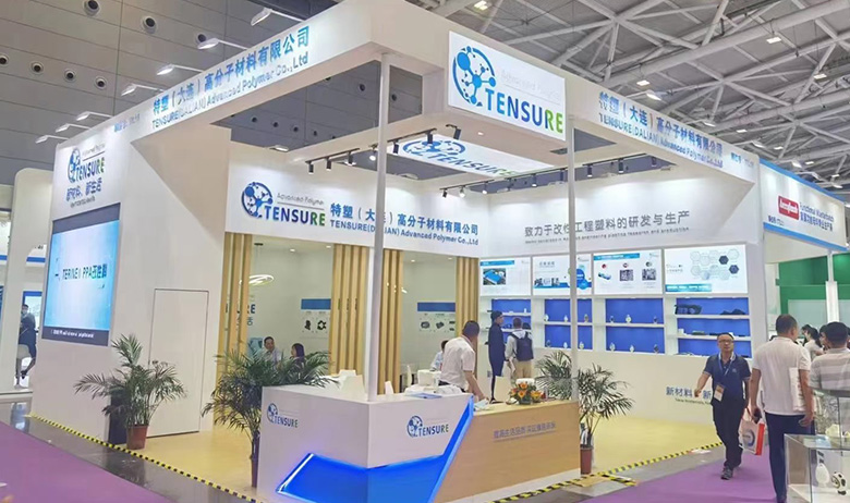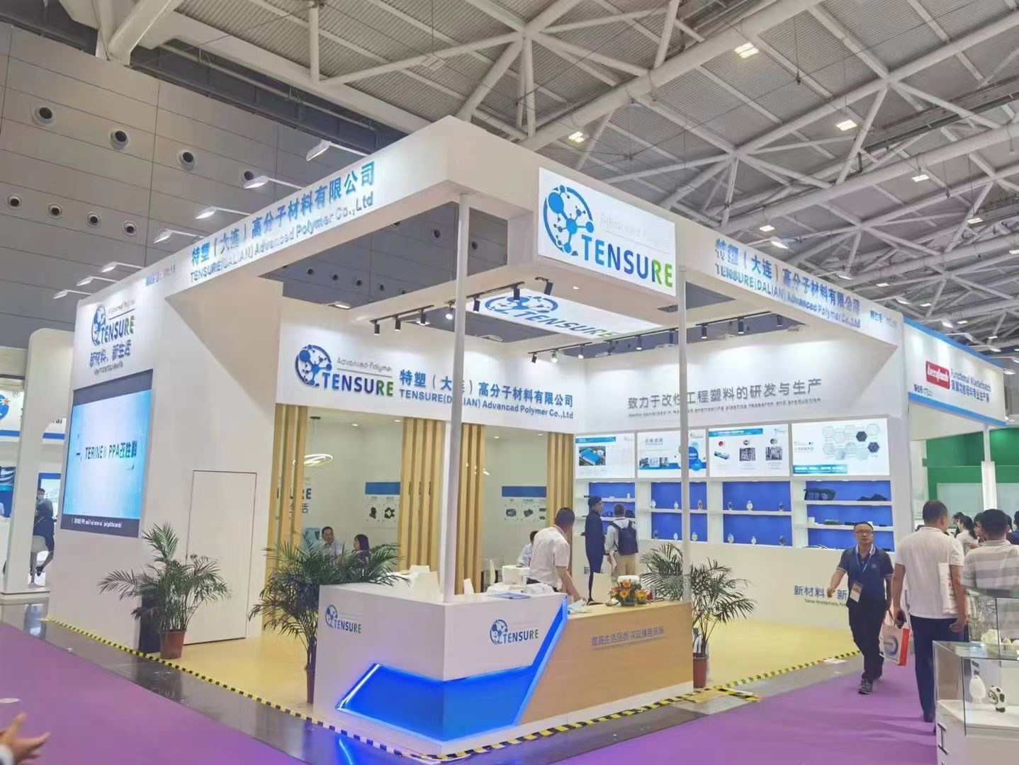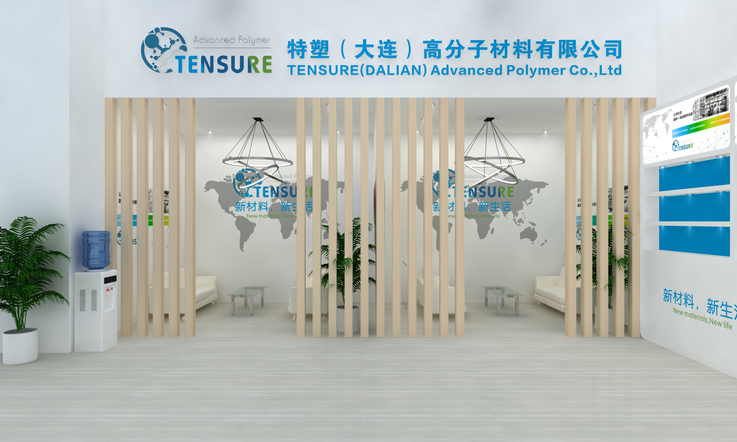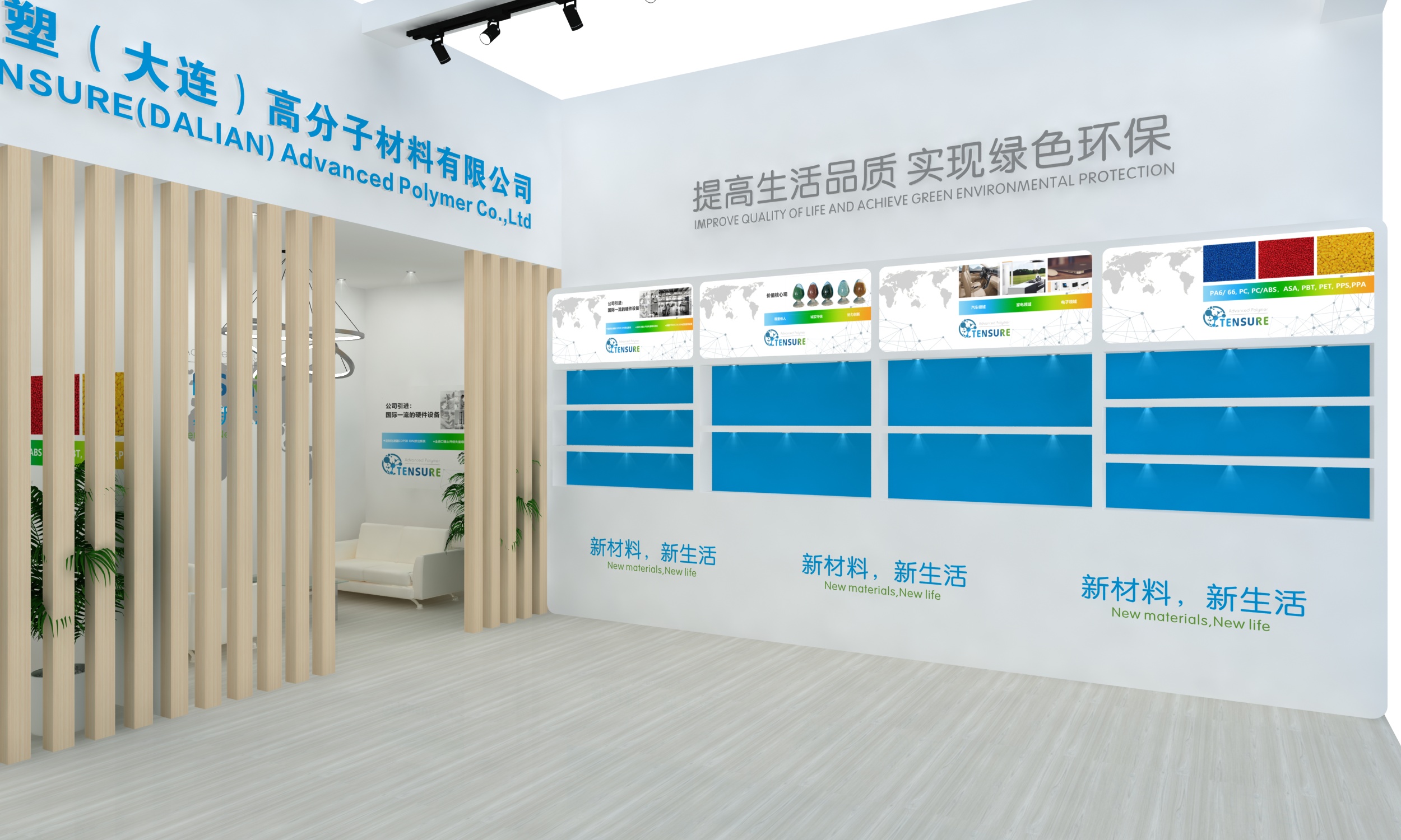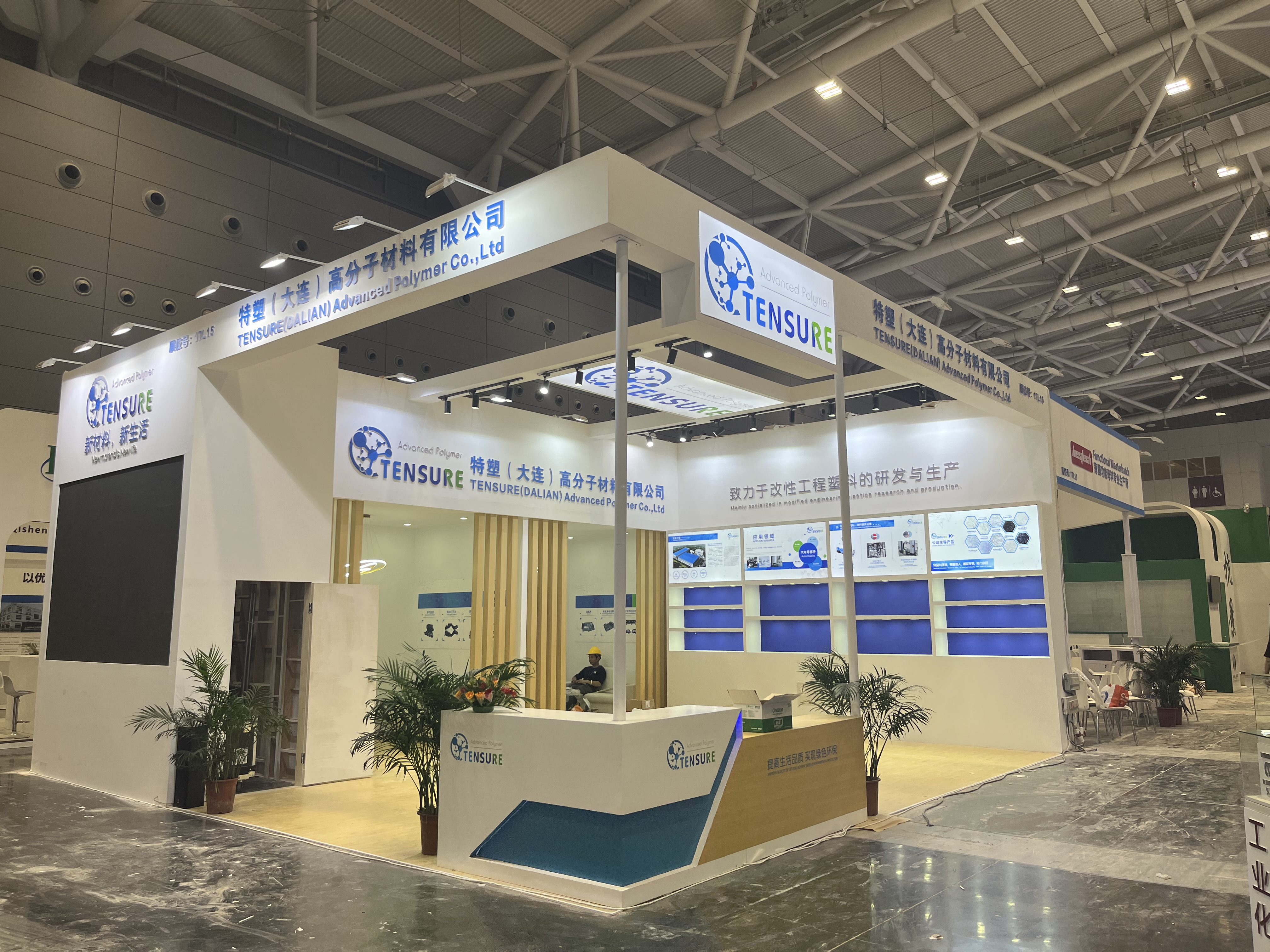 橡塑展会展台设计搭建,该展台功能区域包含接待区、洽谈区、存储区、品牌展示区